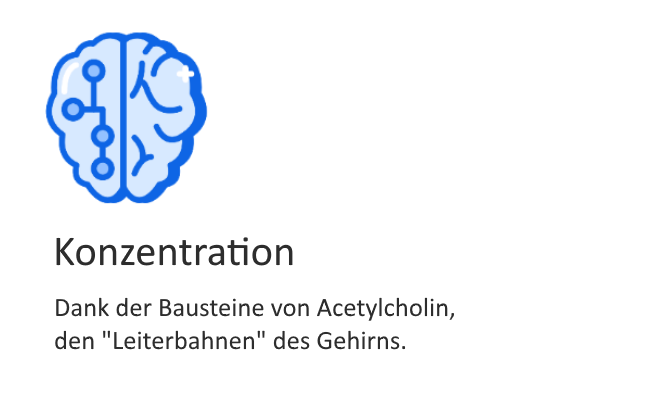 Diese beiden Substanzen sind Bausteine des Neurotransmitters Acetylcholin. Acetylcholin ist einer der wichtigsten Neurotransmitter im menschlichen Körper, da durch diesen die Signale gesendet werden, die die Kommunikation zwischen Gehirnzellen ermöglichen.